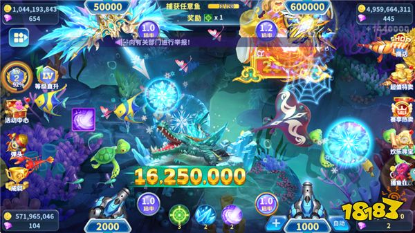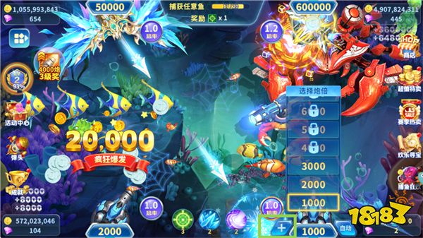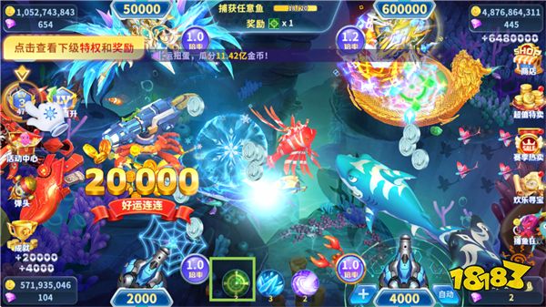 1. 0.1-9999倍炮無級調(diào)速,一鍵鎖定黃金魚